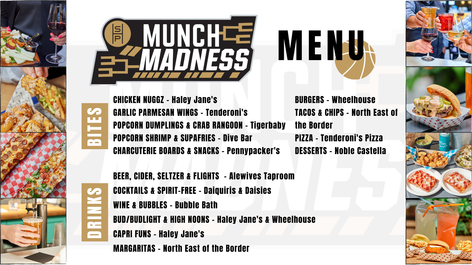 March Madness starts March 17 and we’re here for all of your viewing, drinking and snacking needs! See the menu below for some snack and drink highlights.