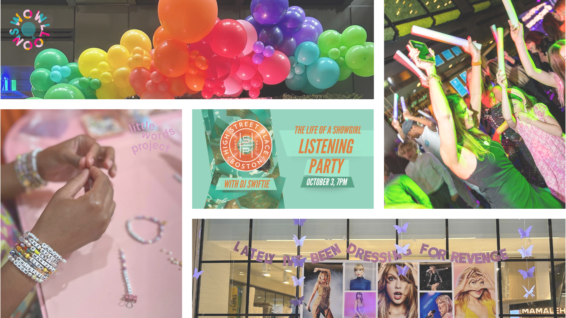 📸 Photo Ops by Wowlloons! – Capture your Swiftie style with themed backdrops and photo moments designed for friendship-bracelet stacking, showgirl glam, and celebrating the big engagement news.